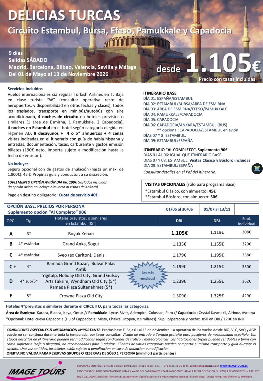Delicias TURCAS 9 ds. Verano 2026: Estambul, Bursa, Esmirna, Efeso, Pamukkale, Capadocia y Ankara, dsd 1.105€